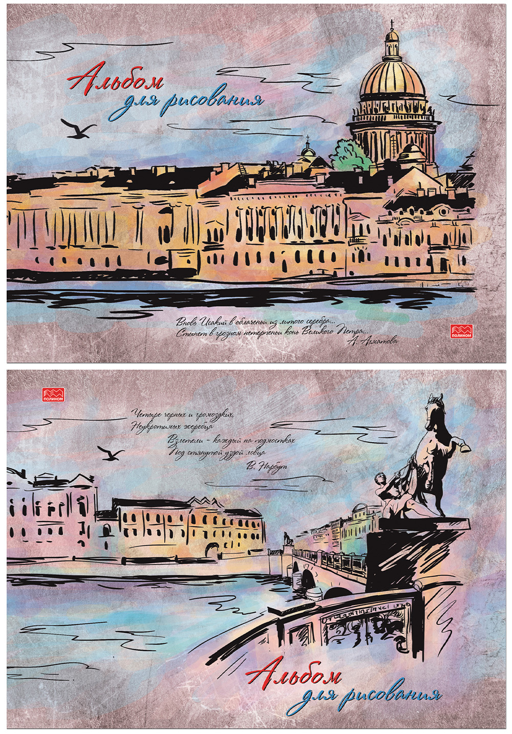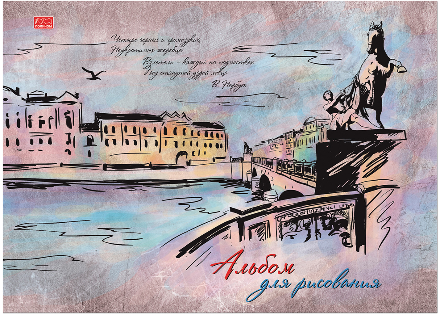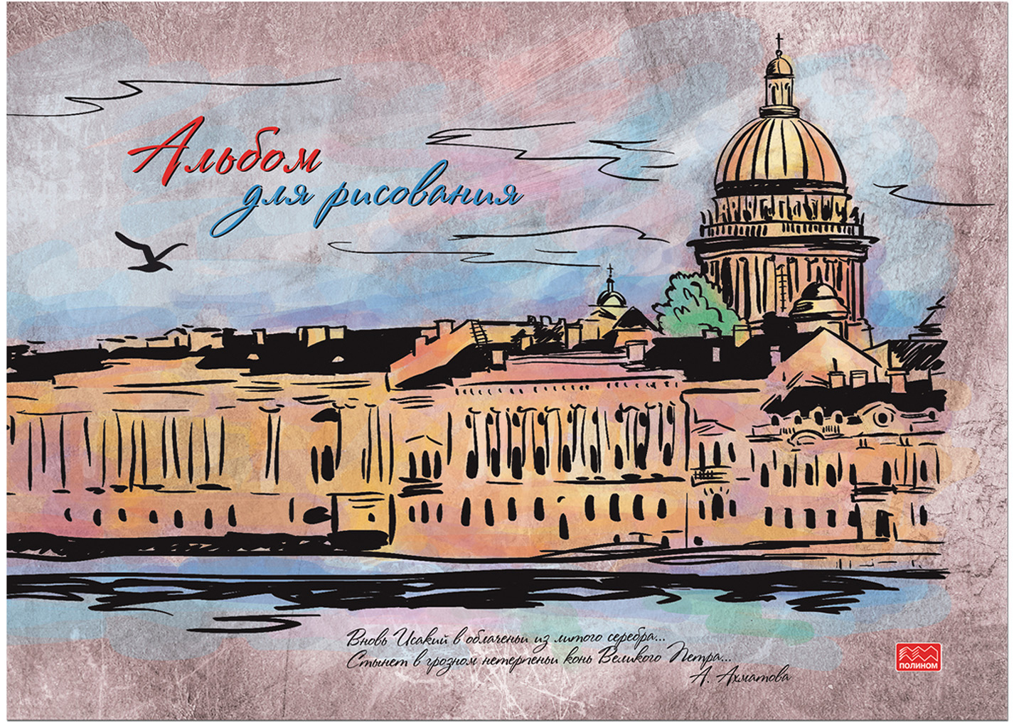 Альбом для рисования, формат А4, 40 л., блок — офсет, 100г/м кв., обложка — мелов.картон, цветная печать, фактурный УФ-лак "холст", на склейке.