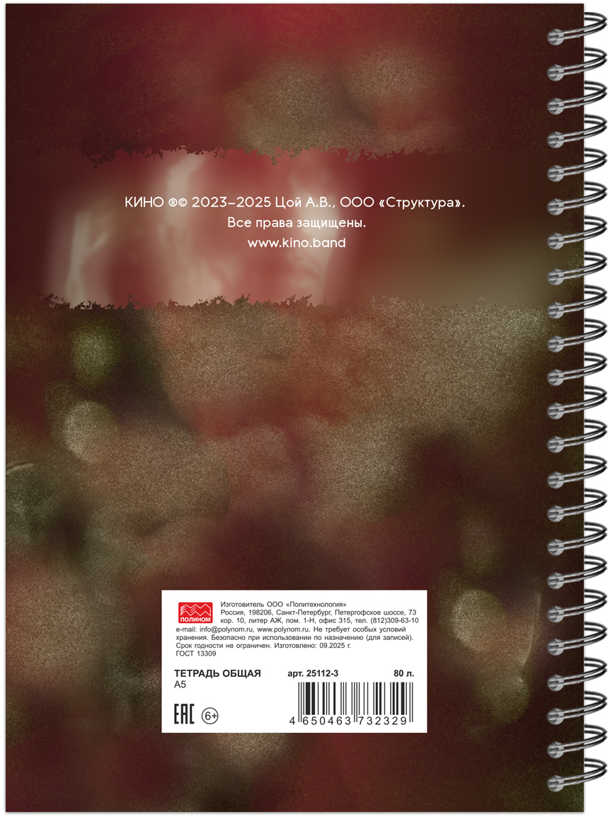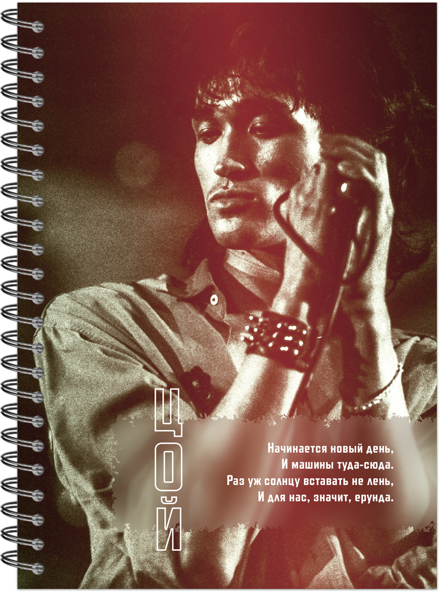 Тетрадь общая А5 80л, ЦОЙ. КИНО №13, обложка-мелов.картон+софттач-лак, мет.гребень, клетка