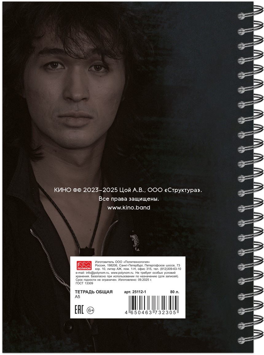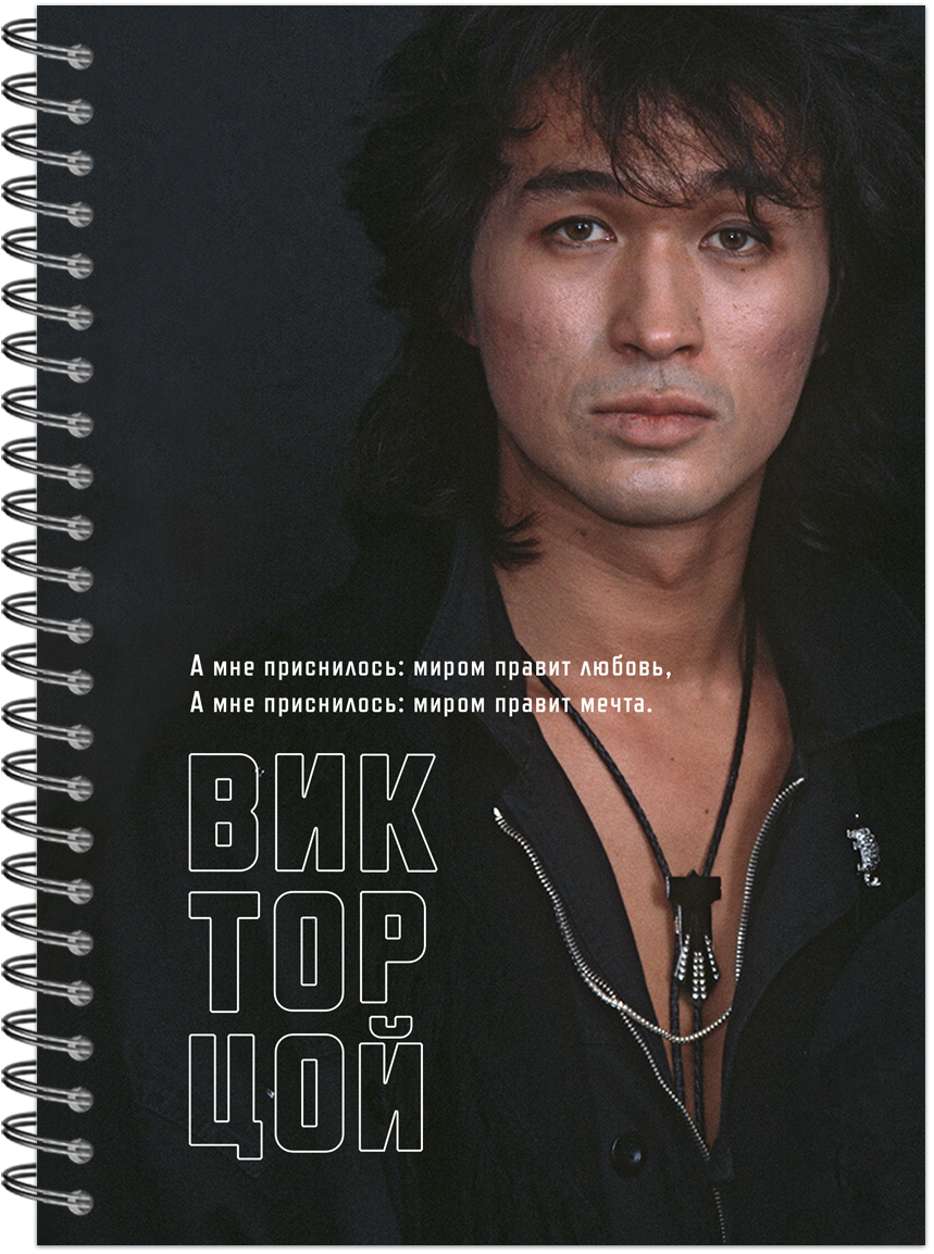 Тетрадь общая А5 80л, ЦОЙ. КИНО №8, обложка-мелов.картон+софттач-лак, мет.гребень, клетка