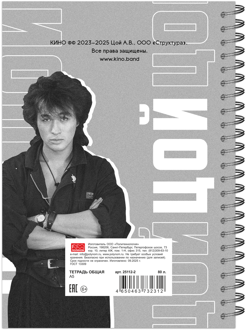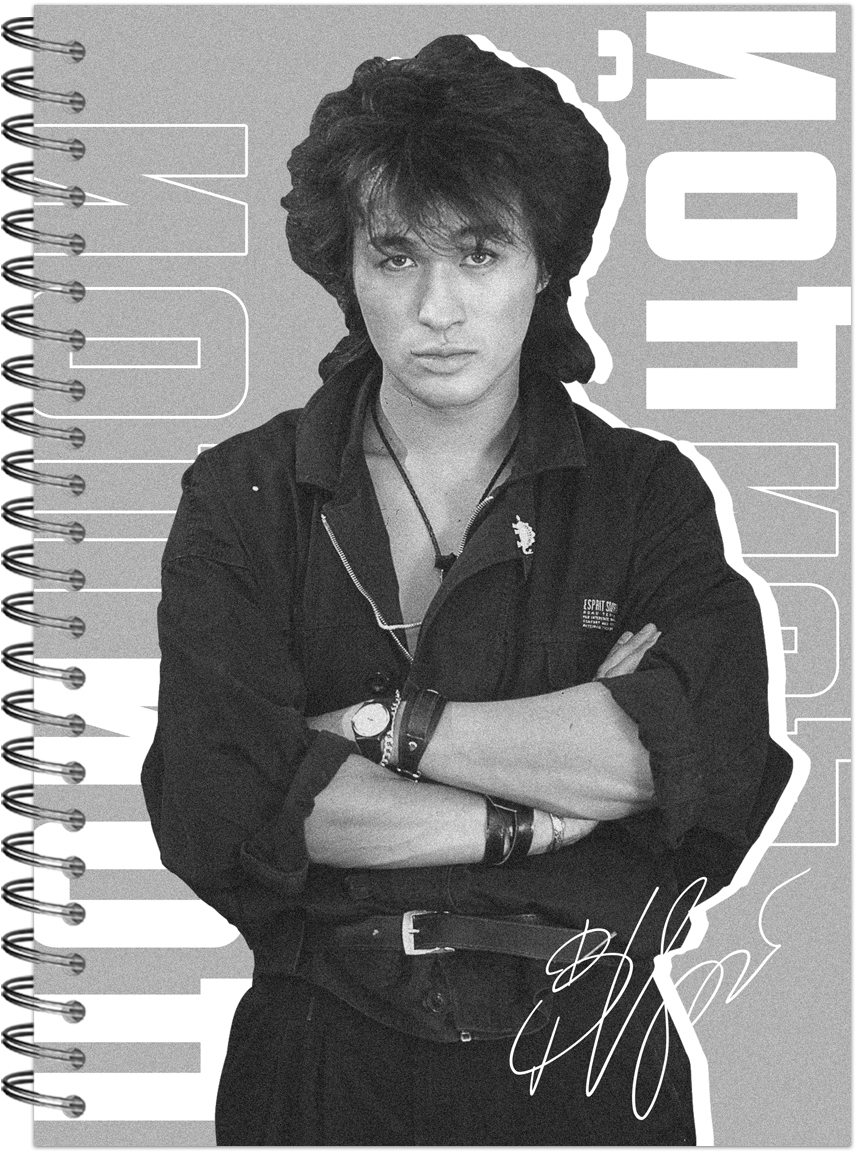 Тетрадь общая А5 80л, ЦОЙ. КИНО №10, обложка-мелов.картон+софттач-лак, мет.гребень, клетка